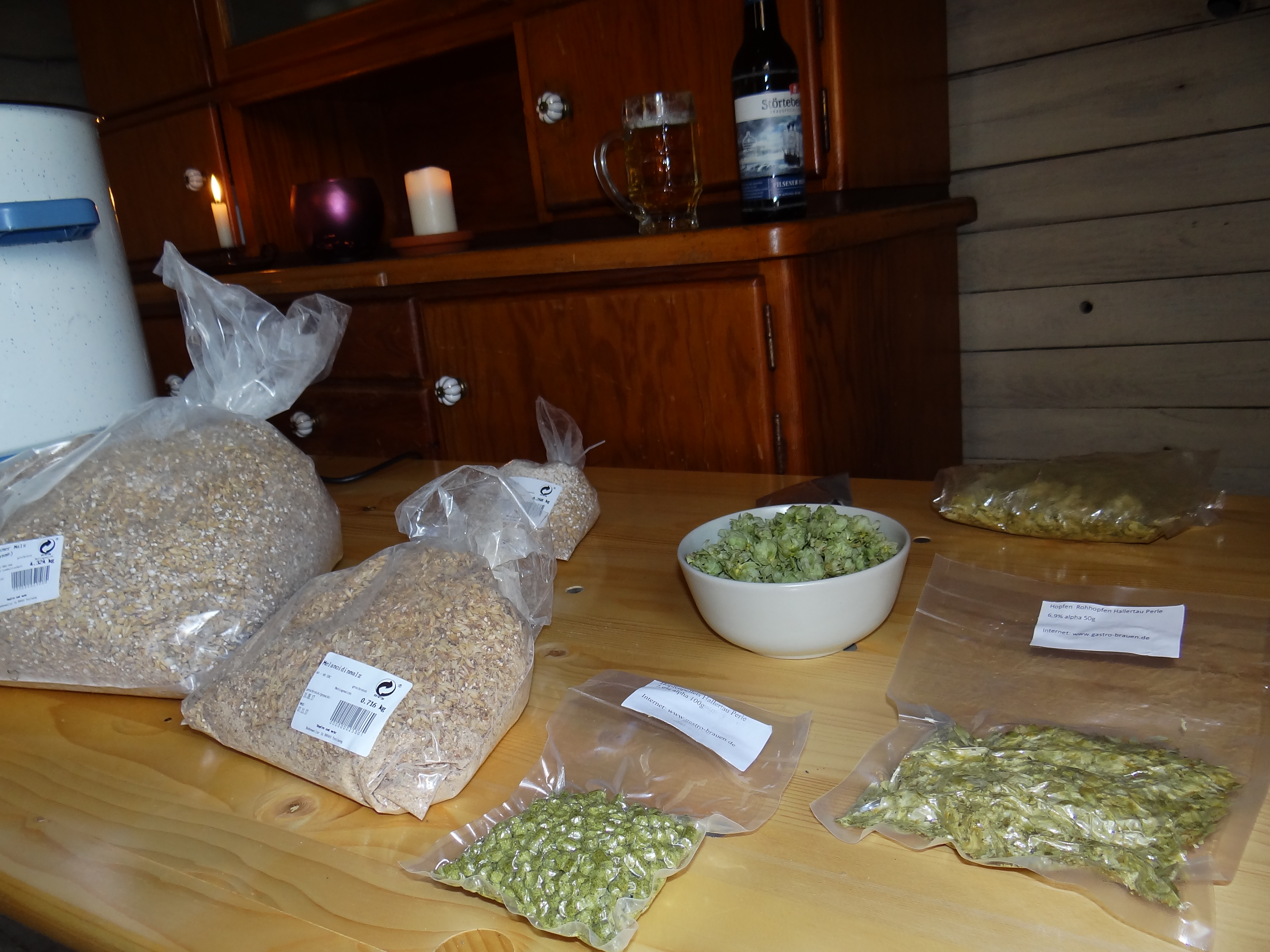 bei 100°C 3x nach jeweils 20 min. eine Hopfengabe Hallertauer Perle Dolden