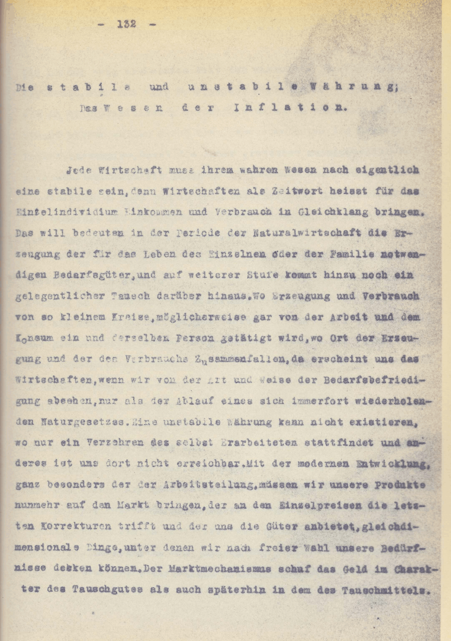 [S. 7] Behufe das reale Tauschgut benötigen, ist nicht einzusehen, solange es kein G u t geben kann – und nie wird die Natur uns ein solches bescheren -, das über Zeit und Raum hinaus die absolute Wertkonstanz in sich birgt.